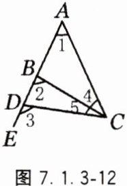 12. 如图7.1.3-12,∠2与∠3是________,∠1与∠4是________,∠4与∠2是________,∠2与∠5是________.