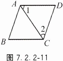 11. 如图7.2.2-11,$AC$平分$\angle BAD$,$\angle1=\angle2$.