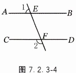 4. 如图7.2.3-4,若AB//CD,EF分别交AB,CD于点E,F,∠1=70°,则∠2的度数为_______.
