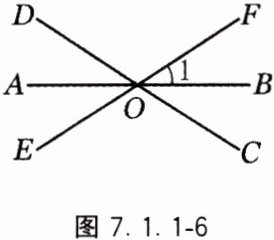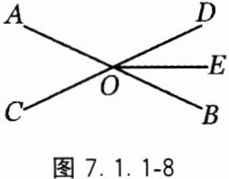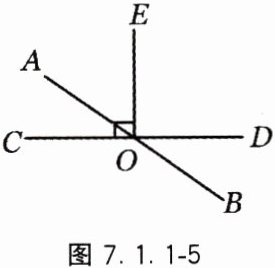 6. 如图 7.1.1-5,直线 $AB$ 与 $CD$ 相交于点 $O$,且 $\angle COE = 90^{\circ}$.