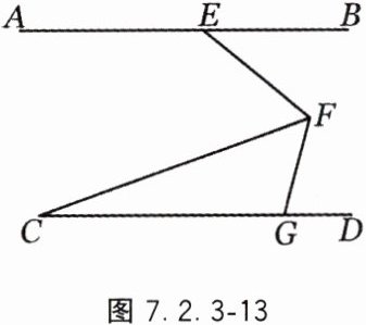 13. 如图7.2.3-13,直线AB与射线CD平行,点E是AB上的一点,点G是CD上的一点,∠BEF=35°,FC平分∠EFG,若∠C = 20°,求∠FGD的度数.