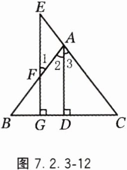 12. 如图7.2.3-12,三角形ABC中,AD⊥BC于点D,点E为CA延长线上一点,作EG⊥BC于点G,若∠E=∠1,求证:AD平分∠BAC.