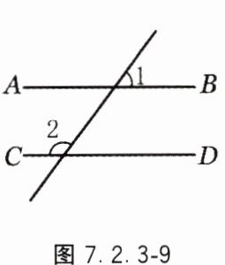 9. 如图7.2.3-9,AB//CD,若∠2=135°,则∠1的度数是( ).