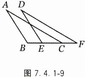 9. 在如图7.4.1-6所示的正方形网格中,三角形DEF是由三角形ABC平移得到的.