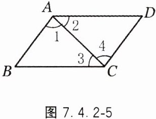 8. 如图 7.4.2 - 5,由 $AB// CD$ 可以得到( ).