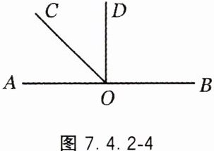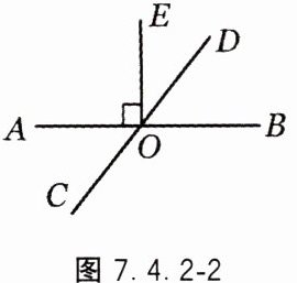 4. 如图 7.4.2 - 2,直线 $AB$,$CD$ 相交于点 $O$,$OE\perp AB$,$O$ 为垂足. 若 $\angle EOD = 38^{\circ}$,则 $\angle AOC =$ ,$\angle COB =$ .(填度数)