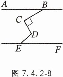 11. 如图 7.4.2 - 8,若 $AB// EF$,$BC\perp CD$,垂足为 $C$,$\angle ABC = 30^{\circ}$,$\angle DEF = 45^{\circ}$,则 $\angle CDE$ 等于( ).