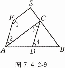 12. 如图 7.4.2 - 9,$AC// FE$,$\angle 1+\angle 3 = 180^{\circ}$,求证:$\angle FAB=\angle 4$.
