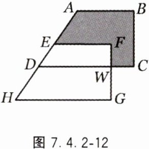 18. 如图 7.4.2 - 12,把直角梯形 $ABCD$ 沿 $AD$ 方向平移到梯形 $EFGH$,若 $HG = 24\ m$,$WG = 8\ m$,$WC = 6\ m$,求阴影部分的面积.