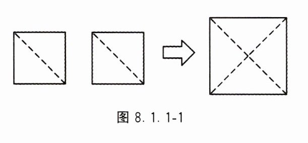 13. 如图 8.1.1 - 1,用两个边长为$\sqrt{18}$ cm的小正方形纸片剪拼成一个大的正方形.