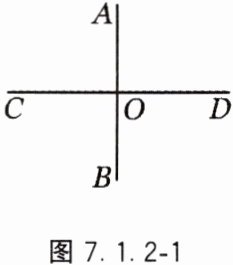 3. 如图 7.1.2 - 1,直线$AB$与$CD$相交于点$O$,若$\angle AOC=\angle AOD$,则$\angle AOD =$______,此时直线$AB$与$CD$互相________.