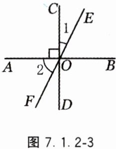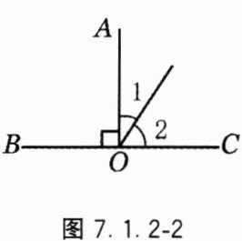 4. 如图 7.1.2 - 2,若$AO\perp BC$,垂足为$O$,则$\angle 1$与$\angle 2$的关系是________.
