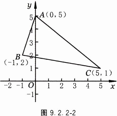 13. 如图 9.2.2 - 2,在三角形$ABC$中,任意一点$M(x_0$,$y_0)$平移后的对应点为$M_1(x_0 - 3$,$y_0 - 5)$,将三角形$ABC$做同样的平移得到三角形$A_1B_1C_1$,求三角形$A_1B_1C_1$三个顶点的坐标.