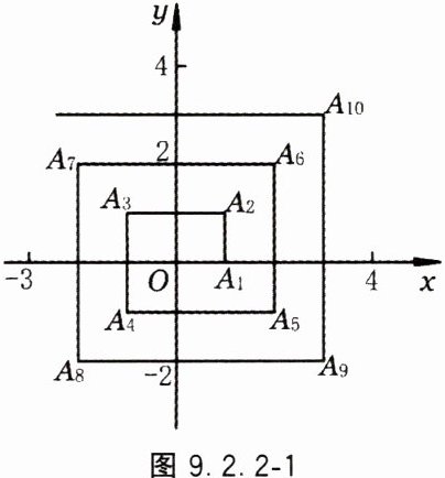 12. 如图 9.2.2 - 1,已知$A_1(1$,$0)$,$A_2(1$,$1)$,$A_3(-1$,$1)$,$A_4(-1$,$-1)$,$A_5(2$,$-1)$,$\cdots$,则点$A_{2024}$的坐标为 ________________.