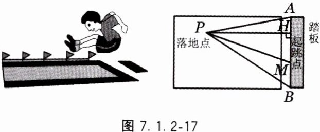 7. 如图 7.1.2 - 17,测量运动员的跳远成绩应选取图中( ).