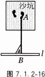 6. 如图 7.1.2 - 16,在立定跳远中,体育老师是这样测量运动员成绩的,用一块三角尺的一边紧贴在起跳线上,另一边与拉直的皮尺重合,这样做的理由是( ).