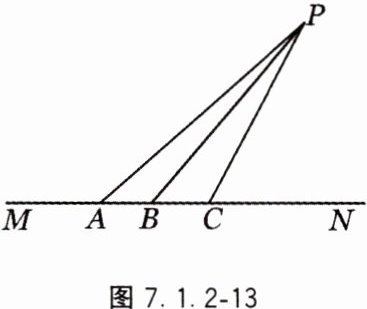 4. 如图 7.1.2 - 13,已知点 P 是直线 MN 外一点,点 A,B,C 是直线 MN 上三点,分别连接 PA,PB,PC.