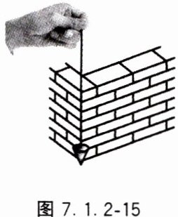 (2)如图 7.1.2 - 15,建筑工人常在一根细绳上拴一个重物,做成一个铅锤,挂铅锤的线总垂直于地面内的任何直线,当这条线贴近墙壁时,说明墙与地面垂直,请说出它的根据:______________________________.