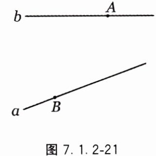 12. 如图 7.1.2 - 21 所示,码头、火车站分别位于 A,B 两点,直线 a 和 b 分别表示铁路与河流.