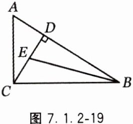 9. 如图 7.1.2 - 19,已知∠ACB = 90°,CD ⊥ AB,垂足为 D,则点 B 到直线 CD 的距离指的是( ).