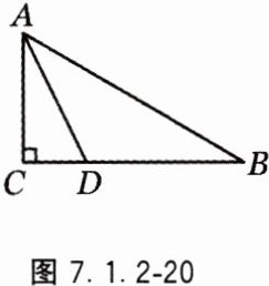10. 如图 7.1.2 - 20,若 AC ⊥ BC,垂足为 C,AC = 4,点 D 是线段 BC 上的动点,则 A,D 两点之间的距离不可能是( ).