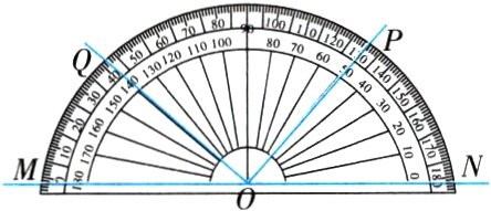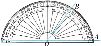 4. (北京)如图所示,用量角器度量∠AOB,可以读出∠AOB的度数为( )