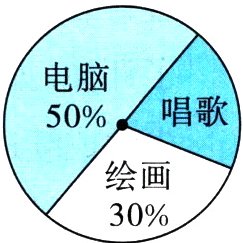 6. 如图是七年级(1)班参加课外兴趣小组人数的扇形统计图,则表示唱歌兴趣小组人数的扇形的圆心角度数是( )