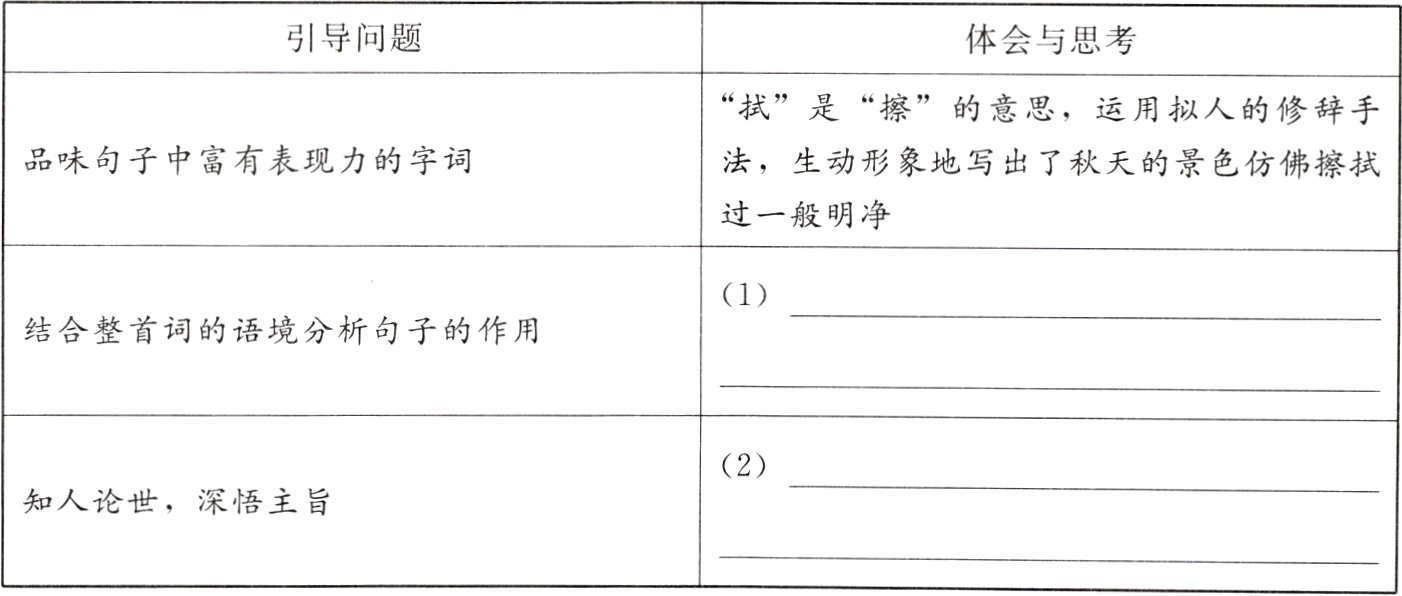|结合整首词的语境分析句子的作用|(1)______________________________|