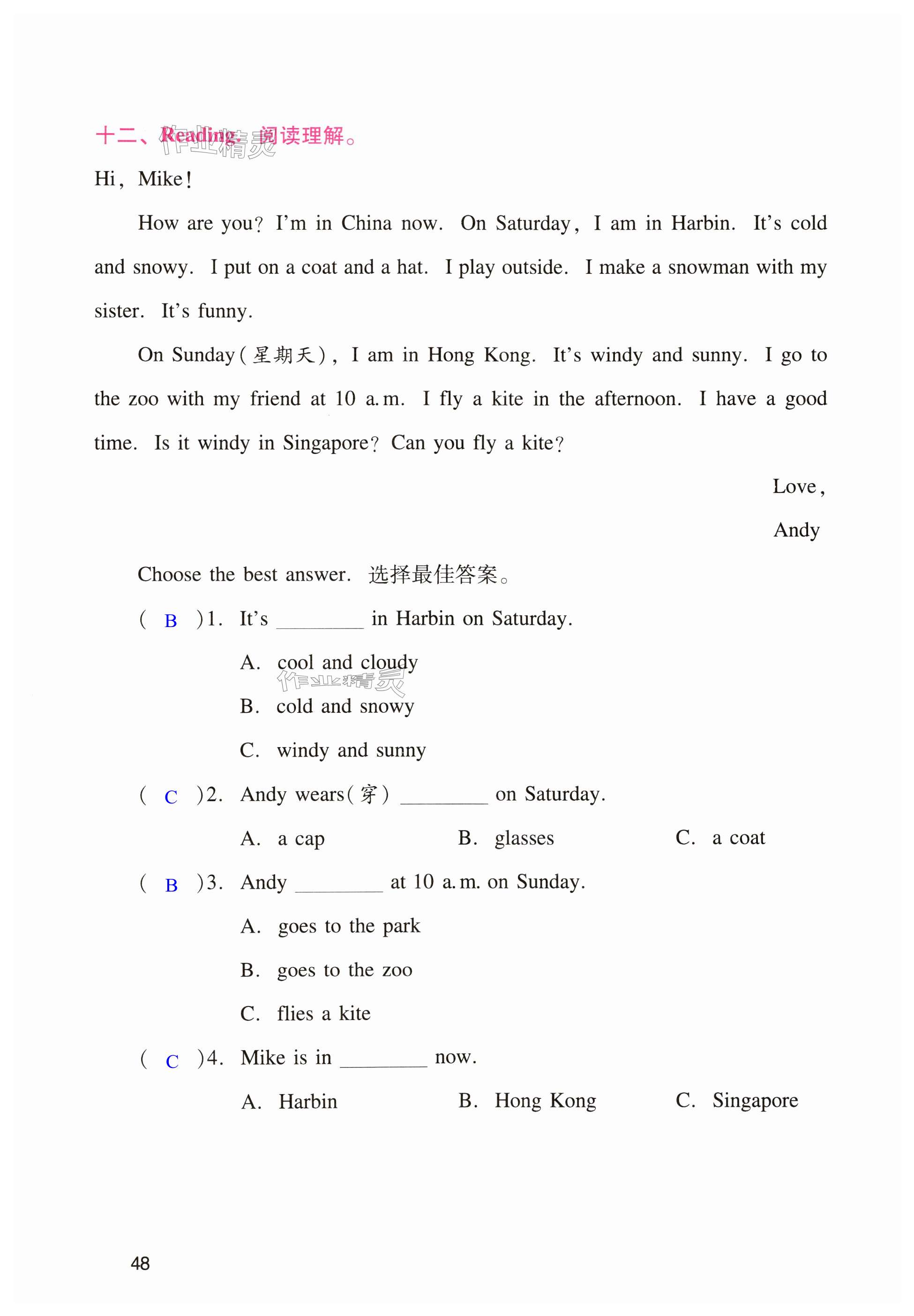 注:目前有些书本章节名称可能整理的还不是很完善,但都是按照顺序排列的,请同学们按照顺序仔细查找。练习册 2025年新课程学习辅导四年级英语下册人教版 答案主要是用来给同学们做完题方便对答案用的,请勿直接抄袭。