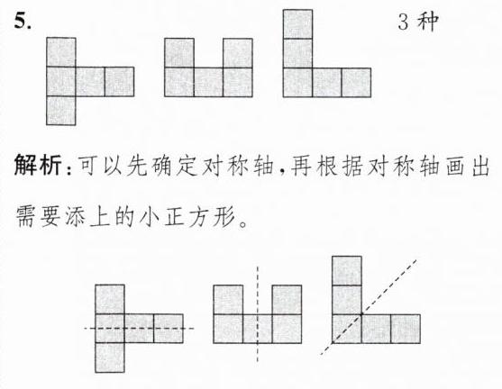 5.(操作探究)在下面的图形上再添上一个相同的正方形,使补画后的图形是轴对称图形。