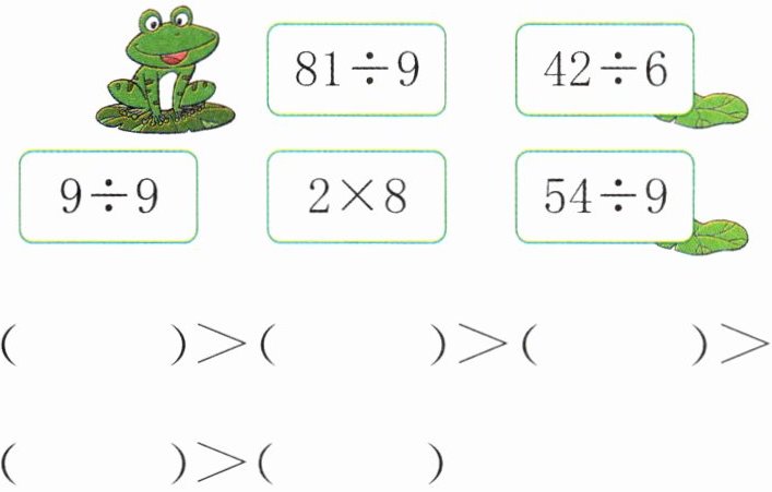 3. 将下面的算式按照得数从大到小的顺序排一排。
