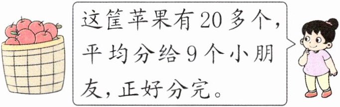 解析:这筐苹果有20多个,平均分给9个小朋友,正好分完,根据9的乘法口诀“三九二十七”可知,这筐苹果有27个。