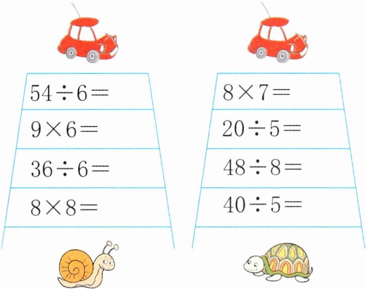 1. 把下面算式中运用同一句口诀的涂上相同的颜色。