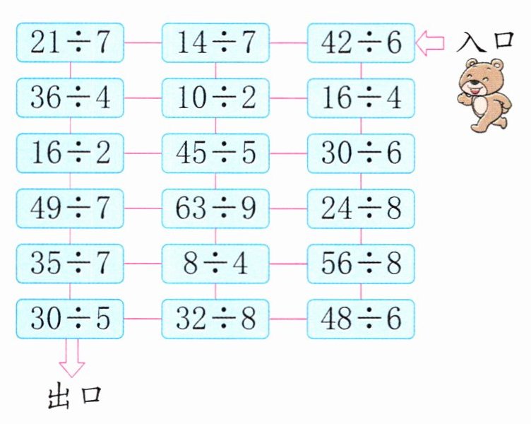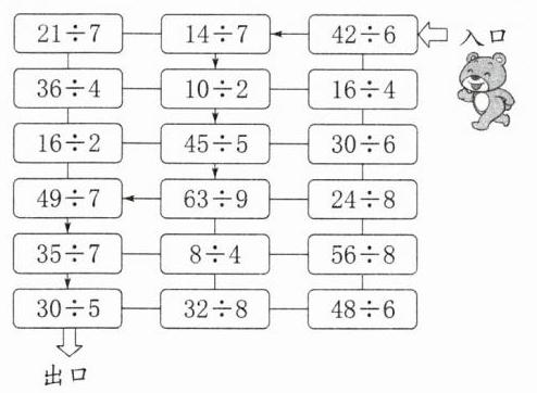 1. 小熊走迷宫,标出箭头。(算出的商是下一步算式的除数)