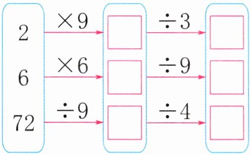 2@@9@@3@@8@@4@@7@@5@@6@@解析:得数为28的乘法口诀只有“四七二十八”,得数为30的乘法口诀只有“五六三十”,所以可以确定4、7、5、6,利用剩下的2、3、8、9,可填出被除数为18和24的算式。