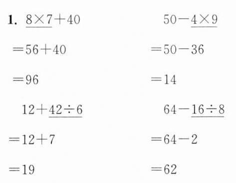 1. 想一想每道题先算什么,用“____”画出来,再计算。