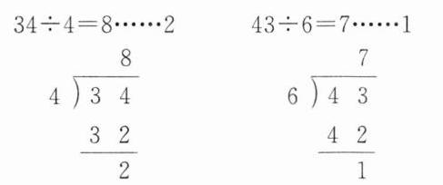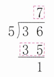 (2)(温州真题)把 36 个桃平均分给 5 只小猴,每只小猴可以分到几个?还剩几个?竖式中的“7”表示( ),“35”表示( )。
