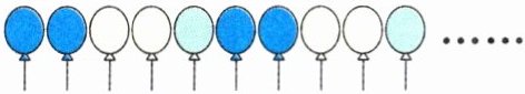 27÷5 = 5(组)……2(个) 2×5 + 2 = 12(个) 解析:规律是每5个气球1组,分别是2蓝2黄1绿,先求出27个气球里面有5组还剩2个,5组中一共有2×5 = 10(个)蓝气球,再加上剩的2个蓝气球,一共就是10 + 2 = 12(个)蓝气球。