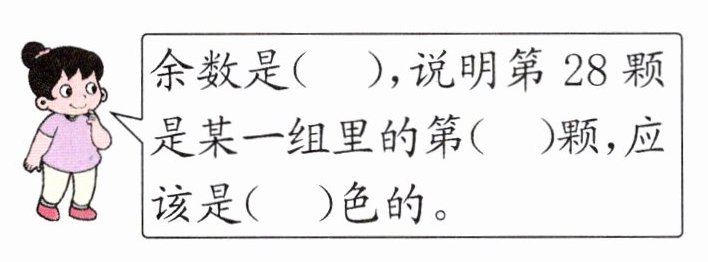 5@@28÷5 = 5(组)……3(颗)@@3@@3@@黑@@黑