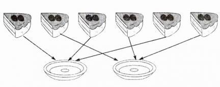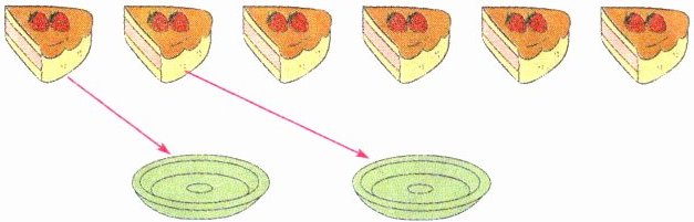 把 6 块蛋糕平均分成 2 份,每份( )块。