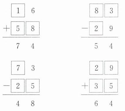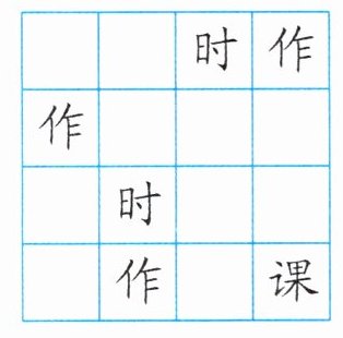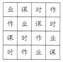 2. 在下面的方格中,每行、每列都有“课”“时”“作”“业”这四个汉字,并且每个汉字在每行、每列都只出现一次。请把方格补充完整。