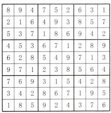 5.(创新应用)请你用 1~9 这九个数字填满 9×9 的格子,要求:每行、每列都用到 1~9,不能重复;每个 3×3 的格子(粗线内)也都用到 1~9,不能重复。
