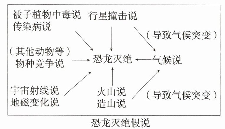 D.【材料二】中所提出的恐龙灭绝假说不属于【材料三】中的任何一种假说。
