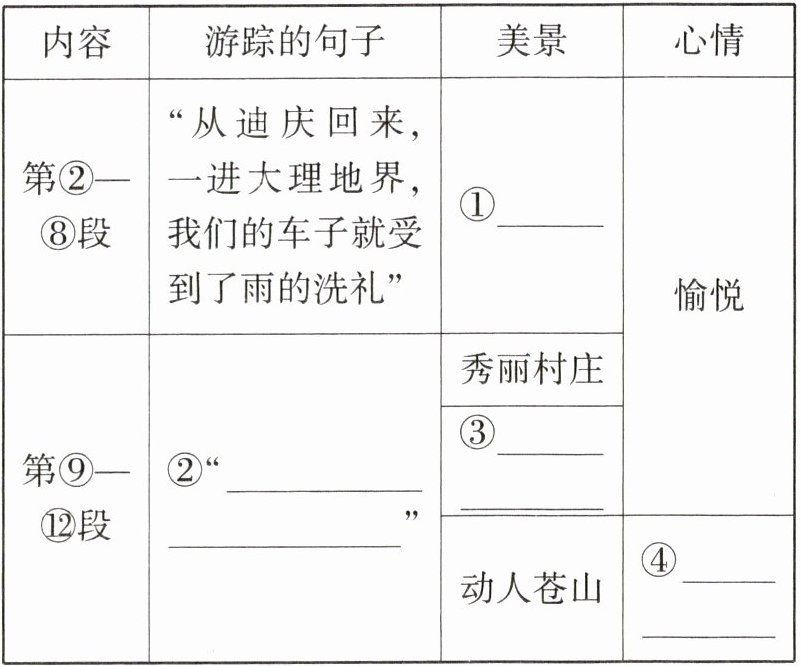 1. 请你根据文章内容,完成下面的表格,理清脉络。