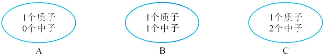7. 读氢的三种原子的原子核示意图,试回答下列问题。