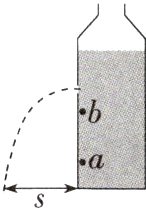 D 液体内部的压强随液体深度的增加而增大,当液体不断喷出时,瓶内液体不断减少,小孔所处的深度不断减小,则小孔所在位置受到水的压强不断减小,液体喷出的水平距离s逐渐变小,故A、B错误;根据$\Delta p = \rho g\Delta h$,液体喷出过程中,a、b两点间的高度差不变,则两点间的液体压强差不变,故C错误,D正确。