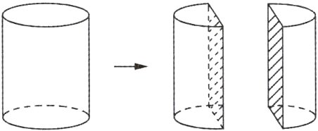 1. 把一个直径8 dm、高10 dm的圆柱沿底面直径切割成两个“半圆柱”,如下图。表面积增加了多少平方厘米?每个“半圆柱”的表面积是多少平方厘米?