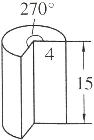 如图所示是一个柱体,高15 cm,底面是一个半径为4 cm、圆心角为270°的扇形,求这个柱体的体积。
