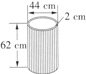 2. 做一个圆柱形无盖木桶,从外面量,底面直径是44 cm,高是62 cm。木板的厚度是2 cm,做一个这样的木桶至少需要多少立方厘米木料?
