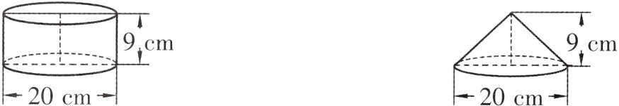 1. 仔细观察下面的两个立体图形,先说一说它们之间有什么联系,再根据已知的信息,分别求出圆柱与圆锥的体积,并说一说你这样计算的理由。